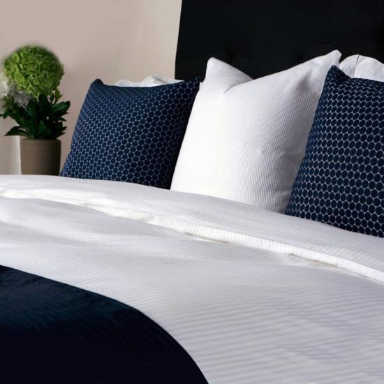 Nosso luxuoso conjunto de cama de algodão poliéster com listras brancas é leve, respirável e fresco ao toque,