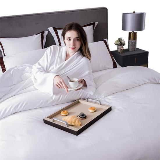 O conjunto de colcha White, com 800 fios, é artesanal e cada etapa do processo é elaboradamente concluída. Com tecido de alta densidade e alta contagem, seu custo-benefício é superior. Todo o estilo é elegante, gracioso e moderno. A moda se combina com a nobreza, revelando um senso de harmonia refinado e moderno.