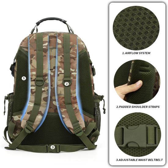 A mochila militar é resistente, leve, durável e à prova d'água, com recursos resistentes a rasgos, o que a torna perfeita para qualquer aventura. A mochila é feita de materiais de alta qualidade que podem suportar ambientes adversos e uso pesado.