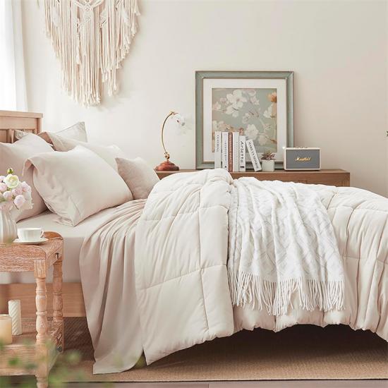 Este conjunto de cama king size da Red Cross Supplies, com preço baixo, é adequado para todas as estações, com enchimento alternativo de plumas de 270 g/m² de alta qualidade para proporcionar conforto incomparável e maciez. O processo de acolchoamento quadrado bem projetado do conjunto de cama da Red Cross Supplies, para todas as estações, previne eficazmente o deslocamento e a aglomeração do enchimento e, mesmo após muitas lavagens, mantém sua textura original, sem a preocupação com a formação de bolinhas. O material leve e quente garante conforto fresco nas noites quentes de verão e aquecimento nas noites frias.