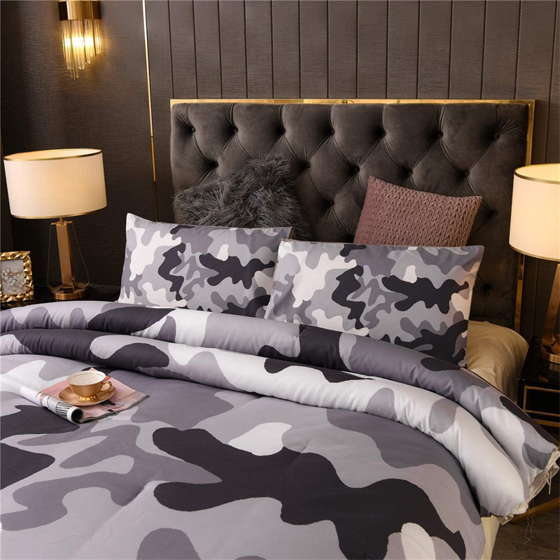Capa de edredom camuflada de infantaria O zíper é mais confiável e durável. Ele fecha o conjunto de capa de edredom com mais rapidez e facilidade do que um botão comum, evitando que o edredom caia da capa do edredom.