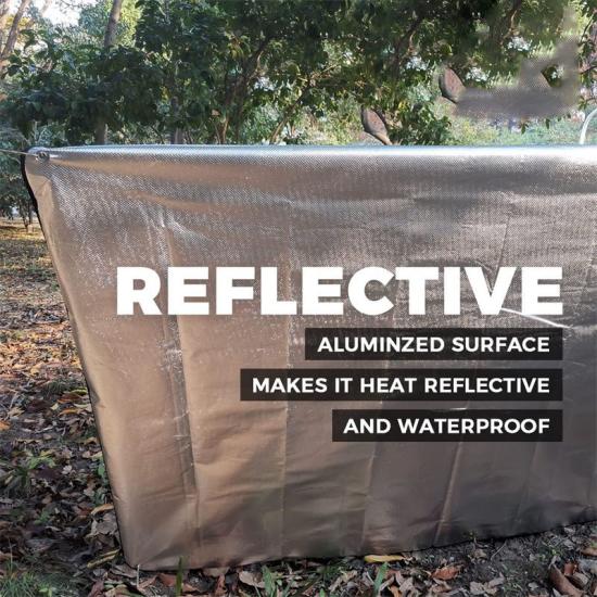 laminado de alumínio refletivo, tecido não tecido e laminado de PE, cuja combinação confere aos toldos