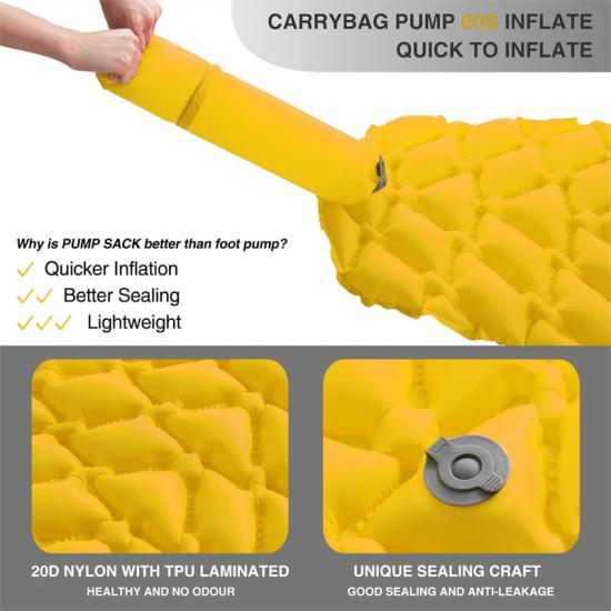 R: Este colchão inflável Rip Stop fabricado na China é muito fácil de inflar, exigindo apenas 10 a 13 respirações.