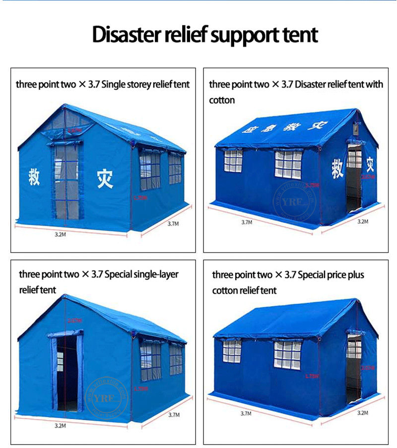 A tenda única especial de 12 m2 para socorro em desastres é um estilo de construção de parede reta retangular com inclinação dupla. Aberto