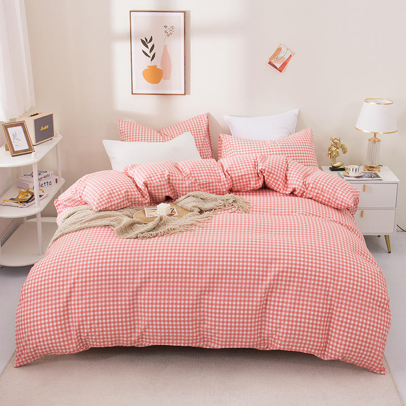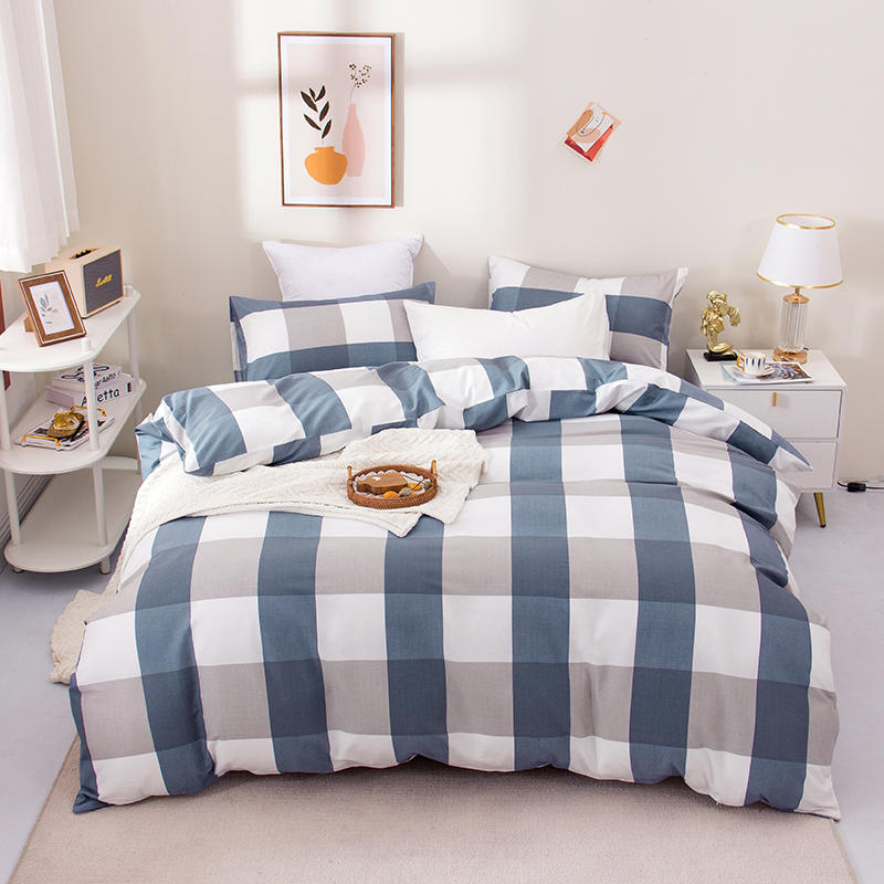 Conjuntos de edredom em atacado. A roupa de cama é feita de tecido de poliéster simples. As lacunas entre as linhas são consistentes em tamanho.