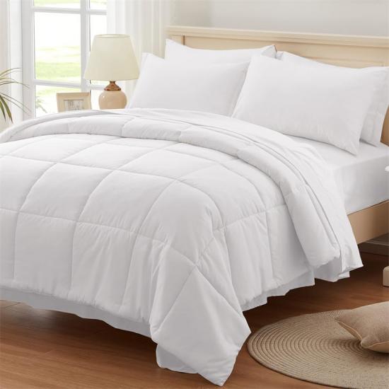 Este Lençol Confortável para Alívio de Desastres Civis utiliza 270 g/m² de plumas de alta qualidade como enchimento alternativo para garantir que o conjunto de cama seja leve e aconchegante. O enchimento de plumas não é apenas macio e aconchegante, mas também possui excelentes propriedades de retenção de calor para mantê-lo aquecido nas noites frias. O processo clássico de acolchoamento quadrado evita que o enchimento se mova e se amontoe, mantendo a colcha com uma aparência elegante e bonita. Além disso, o tecido deste Lençol Prático para Alívio de Desastres Civis é feito de microfibra escovada, que é macia, respirável e antialérgica, proporcionando a você a melhor experiência de conforto.
