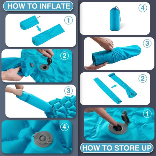 você não precisa gastar muito tempo e esforço para preparar seu equipamento de dormir, basta inflá-lo e usá-lo.