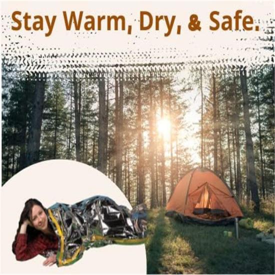 Feito de filme de poliéster aluminizado de alta qualidade, o saco de dormir isolado ajuda a reter até 90% do calor do seu corpo em uma emergência.