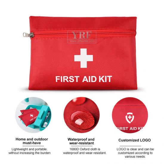 Band-aid retangular *5, Band-aid borboleta *3, Band-aid *2, Kit de emergência *1, Pedaço de gaze *1, Fita *1, Fita PBT *1, Tesoura *1, Torniquete *1, Comprimidos de iodóforo *4 Alfinete de segurança (pacote com 10) * 1, saco de cotonete * 1, comprimidos de álcool * 4, comprimidos Zhiyang * 4,
