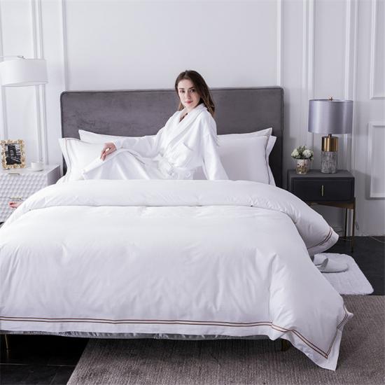 O conjunto de capa de edredom bordado em algodão egípcio com qualidade hoteleira possui excelente propriedade higroscópica. É brilhante e macio. Possui boa elasticidade e é leve. Previne eficazmente a formação de ácaros e mofo. Não irrita a pele. Proporciona uma experiência de sono sem precedentes.