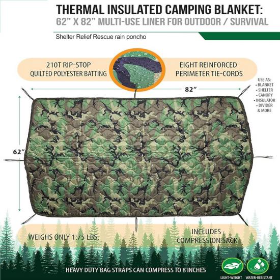 O Emergency Poncho Liner Relief é ideal para os militares durante treinamento de campo e combate.