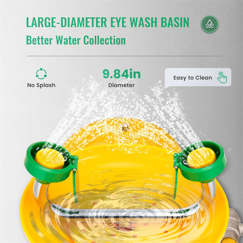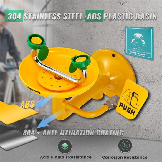 Nosso lava-olhos Emergency Relief Quality é fabricado com materiais de alta qualidade para garantir durabilidade e estabilidade. O material principal é uma bacia de plástico ABS espessada, combinada com aço inoxidável e revestimento anticorrosivo, o que permite manter seu desempenho mesmo em ambientes agressivos com ácidos e álcalis fortes. O bico lava-olhos possui um design exclusivo com 81 orifícios de saída para garantir que a coluna de água seja concentrada e livre de respingos. Com um diâmetro de 250 mm, esta bacia grande foi projetada para coletar água com mais eficiência e manter o piso limpo.