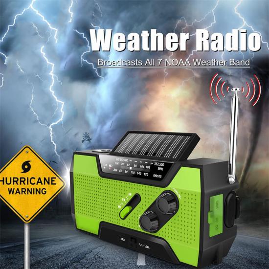 O Rádio de Alta Qualidade para Sobrevivência de Emergência não só recebe de forma confiável as últimas previsões meteorológicas de emergência das estações de rádio NOAA e AM/FM para estar preparado com antecedência, mas também tem uma grande bateria de 2000mAh para fornecer energia de emergência para qualquer tablet pequeno ou telefone celular, uma lanterna LED e luz de leitura para iluminar sua escuridão, uma sirene SOS, uma antena externa e uma manivela confortável e interruptor liga/desliga para todas as suas necessidades em uma emergência.