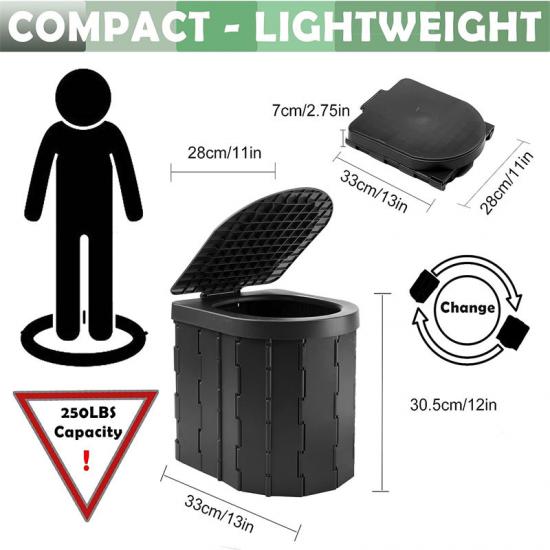 Este vaso sanitário portátil é feito de plástico rígido oval, resistente e durável, e pesa apenas 1,5 kg, o que o torna bastante leve. Quando dobrado, mede 31 x 28 x 30,5 cm e seu tamanho compacto facilita o transporte. Quando desdobrado, a altura é de 30,5 cm, o design do furo é grande o suficiente para facilitar o uso e o processo de desdobramento e instalação é simples.