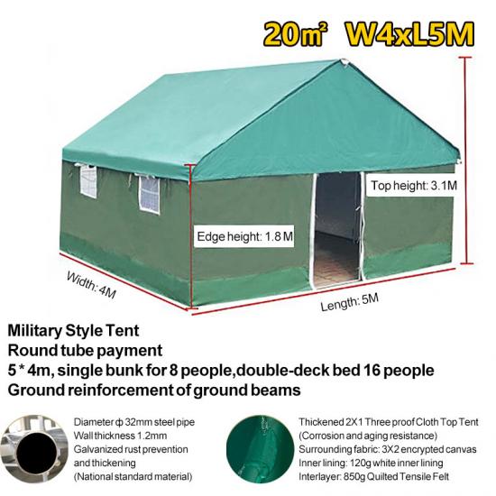 Em desastres como inundações, furacões ou terremotos, nossa Tenda de Emergência é a solução imediata. Ela é amplamente utilizada em socorro emergencial, oferecendo proteção imediata aos afetados. Militares a utilizam para montar acampamentos rapidamente durante as operações. Equipes médicas a utilizam como um ponto de atendimento móvel de saúde. Também é um item comum em doações das Nações Unidas, reservas de emergência armazenadas pelo governo e atividades de socorro da Cruz Vermelha. Esta tenda possui um design fácil de usar e de rápida montagem, com peças pré-montadas. Feita de materiais de alta qualidade, impermeáveis, resistentes a rasgos e duráveis, ela pode suportar condições climáticas adversas. Com várias opções de cores, você pode selecionar com base nas necessidades de visibilidade em diferentes cenários de desastre. Seu interior espaçoso pode acomodar uma grande quantidade de suprimentos de emergência e inúmeros sobreviventes, sendo uma parte fundamental de qualquer plano de resposta a emergências.