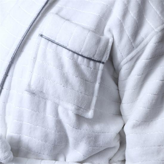 Tricotado Listrado Tecido de veludo O roupão é fácil de lavar à máquina em água morna. O tecido macio e de melhor qualidade seca rapidamente.