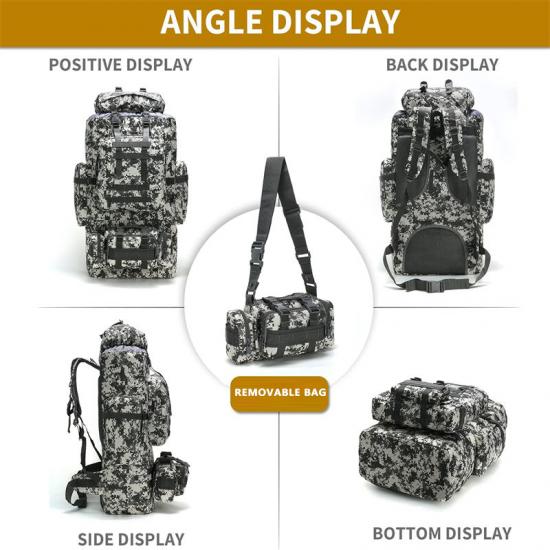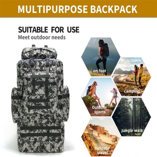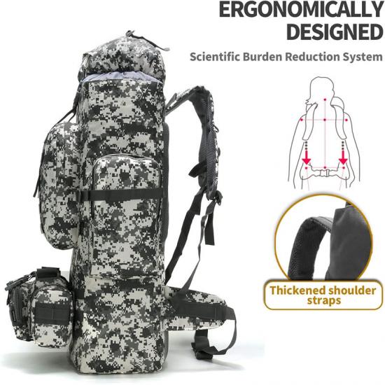 Esta mochila é feita de tecido Oxford 900D durável, que suporta cargas pesadas. Com capacidade de 70 litros, ela tem espaço suficiente para acomodar todos os seus equipamentos e itens essenciais.