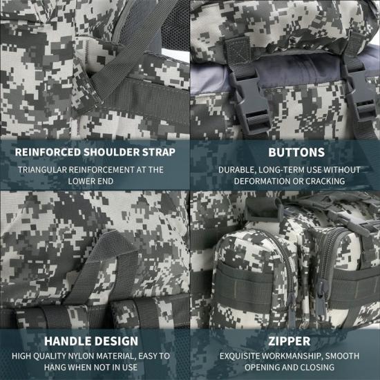 Mochila tática de grande capacidade e baixo preço, com vários compartimentos e à prova d'águaEsta mochila é feita de tecido Oxford 900D de alta qualidade, durável e capaz de suportar cargas pesadas. Projetada com alças ergonômicas e painel traseiro acolchoado, garante o máximo conforto mesmo ao transportar cargas pesadas.