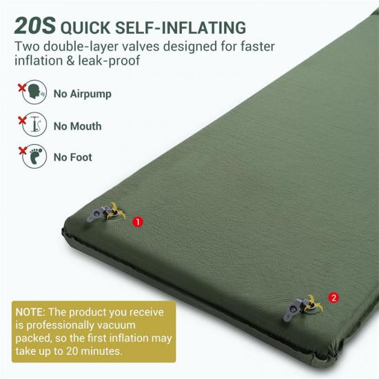 Este colchão inflável de alta resiliência é projetado com espuma viscoelástica para máximo conforto. É perfeito para reservas governamentais e atividades ao ar livre, proporcionando uma boa noite de sono onde quer que você vá.