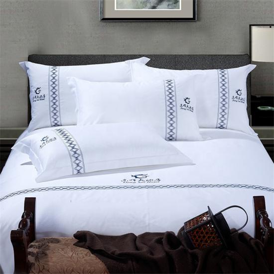 Roupa de cama bordada para hotelaria em tecido de algodão