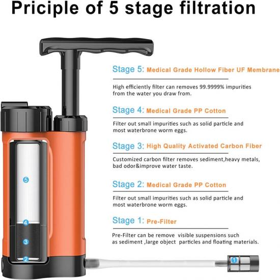 Materiais de Construção e Garantia de Saúde: Este Purificador de Água de Emergência com Preço Baixo é fabricado com 100% ABS, material livre de BPA, garantindo a ausência de substâncias ou odores nocivos durante o processo de filtragem. Você pode usar este produto com total confiança, pois ele será uma forte garantia da segurança da sua água potável.