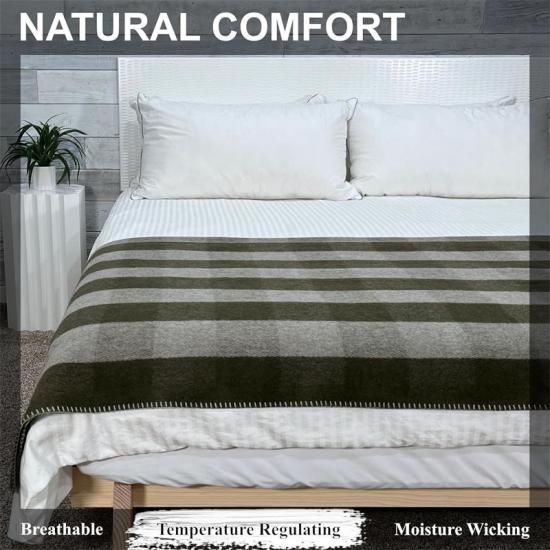 Em segundo lugar, as propriedades naturais de retardamento de fogo deste cobertor de lã lavável à máquina de 1,8 kg também lhe conferem uma vantagem em cenários de uso em estoque. A lã é inerentemente resistente ao fogo e, com nosso processo de fabricação, este cobertor de lã oferece melhor proteção em situações de emergência.