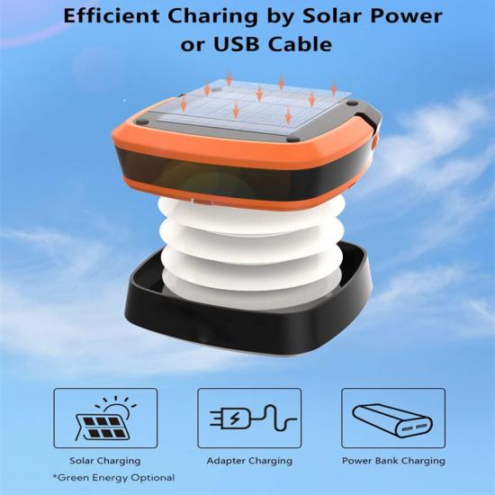 A estrutura da Luz de Emergência Dobrável para Serviços Médicos é feita de tecido impermeável e durável para garantir uma operação estável em diversos ambientes externos. A luz solar integra um painel solar de alta qualidade que não só pode ser carregado por energia solar, como também está equipada com uma porta USB que permite o carregamento por meio de um cabo USB, que pode ser totalmente carregado em cerca de 2 horas. Além disso, a Luz de Emergência Leve para Serviços Médicos possui uma bateria de lítio integrada de 1200mAh que pode ser usada como fonte de energia de emergência para carregar celulares e outros dispositivos de comunicação.