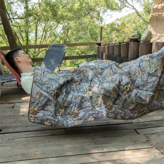 TECIDO E COR: Fornecimento de material de náilon para cobertor Padrão camuflado de um lado e cor cáqui escuro do outro lado, fácil de usar em diferentes ambientes e propósitos.