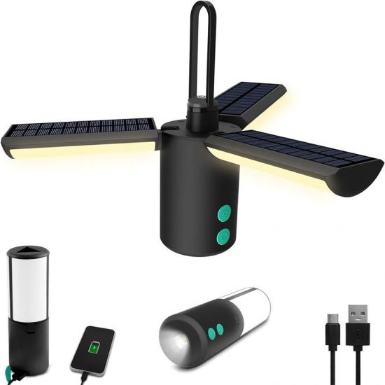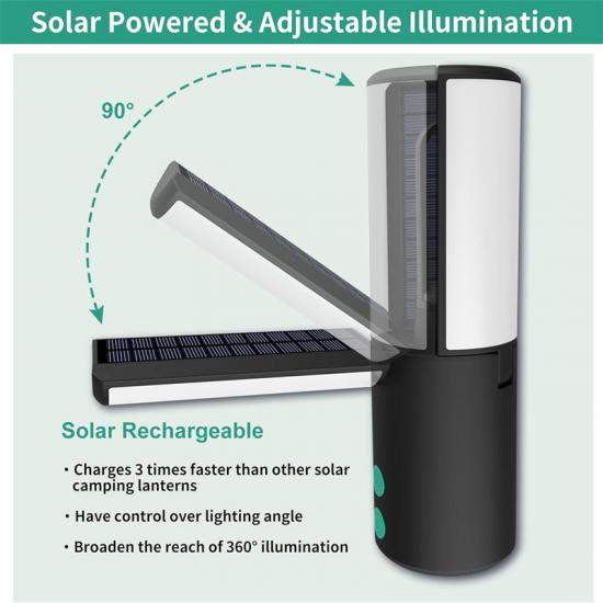 Design de 90° com três painéis solares ajustáveis: a luz de emergência portátil militar é equipada com 3 painéis solares ajustáveis, não só pode ser carregada por energia solar, mas também seu design ajustável permite que você expanda facilmente a cobertura da iluminação de 360° e ajuste o ângulo de iluminação conforme necessário.