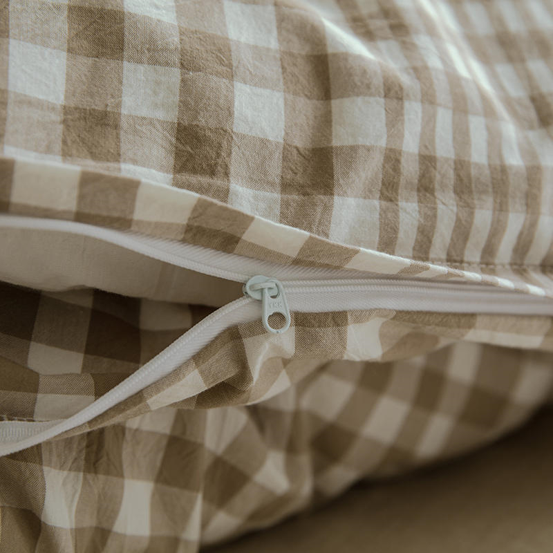 Zíperes e braçadeiras: Fecho de zíper, prático para colocar e tirar o edredom; amarras nos cantos para manter o edredom no lugar.