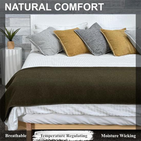 R: O cobertor de lã resistente a odores é feito de 90% lã.