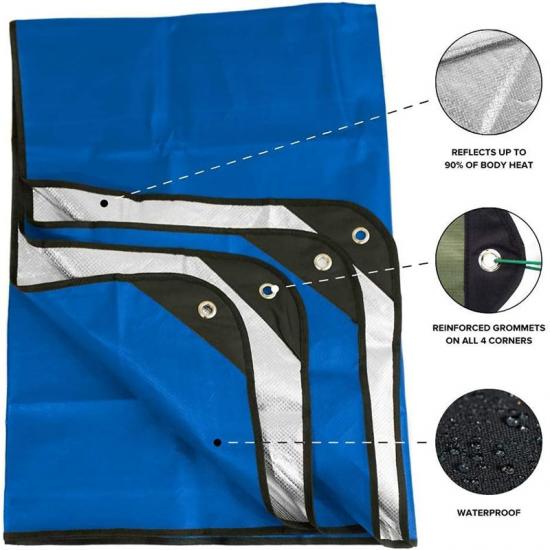 Dossel de proteção solar resistente a rasgos para doações de caridade com costura reforçadaEste toldo para-sol foi projetado para situações de emergência, proporcionando isolamento térmico e proteção contra água. O toldo para-sol portátil de emergência é versátil e pode ser usado em diversas situações de sobrevivência.