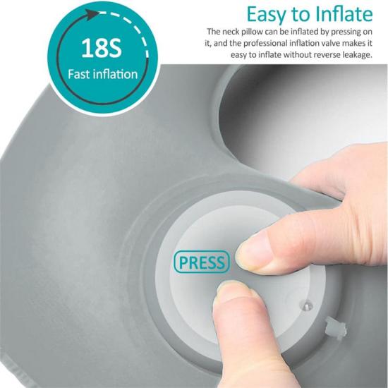 R: Travesseiro inflável exclusivo da National Defens Reserves, ajustável para todos os tamanhos de pescoço, tornando-o adequado para uma ampla variedade de usuários.