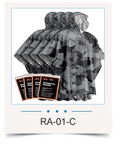 Além disso, a capa de chuva isolada tem muitos outros usos. Por exemplo, o cordão na cintura proporciona ajuste adicional, facilitando o ajuste ao tamanho ideal do corpo. Além disso, sua fixação de revestimento e ilhós de metal resistentes adicionam isolamento, tornando-o fácil de usar como fixação de corda, guarda-sol, barraca de sobrevivência, coleta de água, maca de transporte de emergência, capa de rede, etc. Em suma, o poncho multifuncional tem uma ampla gama de possibilidades de aplicação em socorro emergencial a desastres, atividades militares, auxílio financeiro, engenharia de projetos, materiais de reserva governamental, etc.