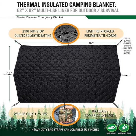 Capa de chuva tamanho governamental: O forro da capa de chuva mede aproximadamente 152 cm de comprimento por 203 cm de largura e pesa aproximadamente 0,8 kg em um saco de compressão. Inclui bolsa acolchoada de compressão de estilo militar para reduzir espaço e volume.