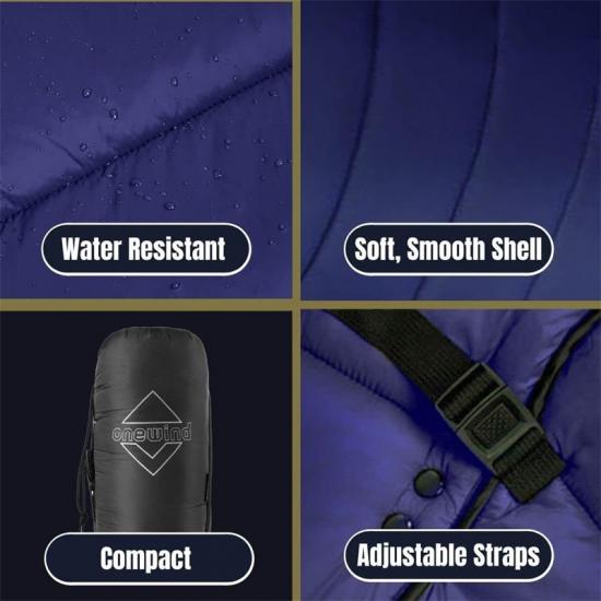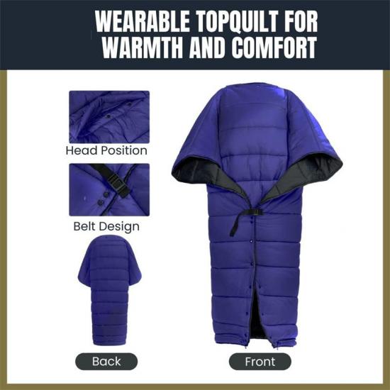 O saco de dormir leve Equipment pode ser usado como uma poncho leve e quente e como uma camada externa isolante extra ao descansar perto do acampamento ou no frio do inverno selvagem.