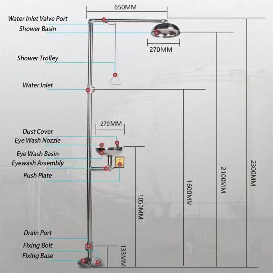 Com seu excelente desempenho e ampla gama de aplicações, este lava-olhos de chuveiro de primeiros socorros é ideal para resgate de emergência e limpeza diária. Seja no local de um resgate de emergência ou no seu trabalho diário, o lava-olhos de chuveiro de fácil operação proporcionará limpeza ocular e primeiros socorros oportunos e eficazes. Escolha nosso lava-olhos de chuveiro de primeiros socorros para sua segurança!