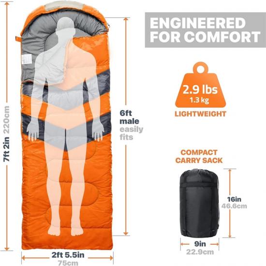 Saco de dormir Alívio de desastres Conforto 220cm x 80cmSINTA A DIFERENÇA - YRF Super Confortável Saco de dormir com capuz de cumeeira Projetados para garantir que, após um dia cansativo de trekking, trilhas, viagens ou qualquer outra exploração, você tenha uma boa e relaxante noite de sono. O design com controle de enrolamento torna a dobragem rápida e fácil. Junte dois zíperes para dobrar o espaço.