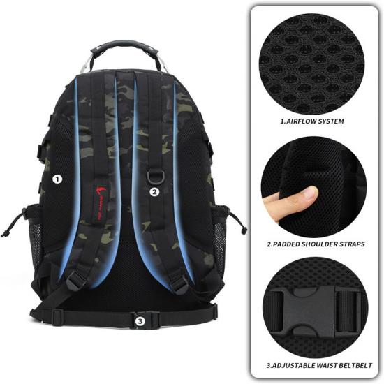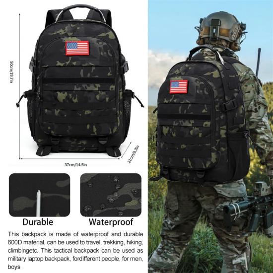 A mochila militar é resistente, leve, durável e à prova d'água, com recursos resistentes a rasgos, o que a torna perfeita para qualquer aventura. A mochila é feita de materiais de alta qualidade que podem suportar ambientes adversos e uso pesado.