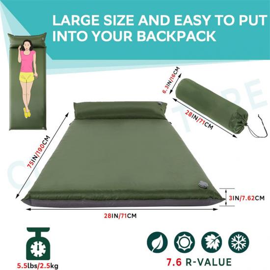 Recomendamos encher manualmente o colchonete no primeiro uso para ativar a espuma de memória e inflar completamente.