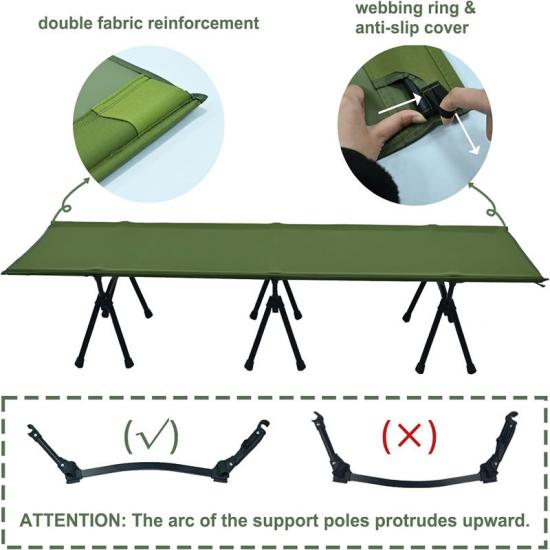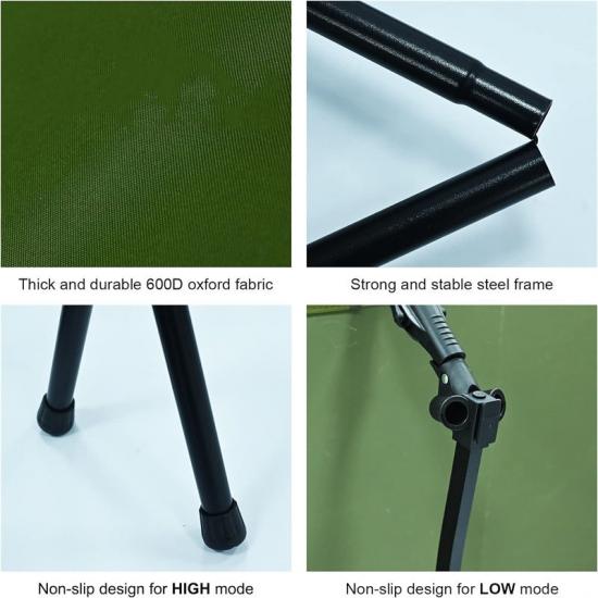 Com dois modos de altura, a cama dobrável portátil superbarata Provide Relief pode ser ajustada em duas alturas diferentes, 18 cm e 38 cm, para atender às suas diferentes necessidades. A configuração de altura de 18 cm fica mais próxima do chão, proporcionando uma superfície de dormir mais estável; enquanto a configuração de altura de 38 cm proporciona melhor isolamento e ventilação.