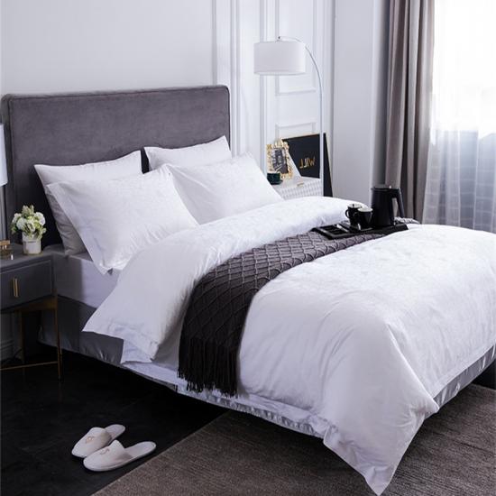Capa de edredom especial, macia e respirável, feita de fio compacto especial 100% algodão penteado de fibra longa. Os lençóis Jacquard Hotel com mistura de algodão egípcio e poliéster são feitos de tecido de alta qualidade, que proporciona transpiração e equilíbrio térmico.