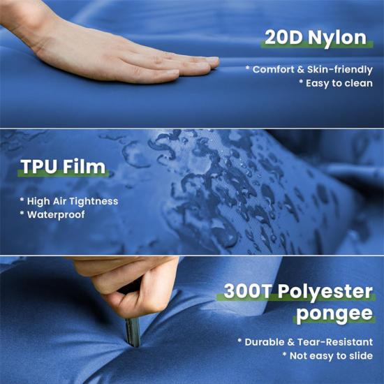 Colchonete inflável leve e fácil de transportar, mas também durável e resistente a rasgos, podendo suportar