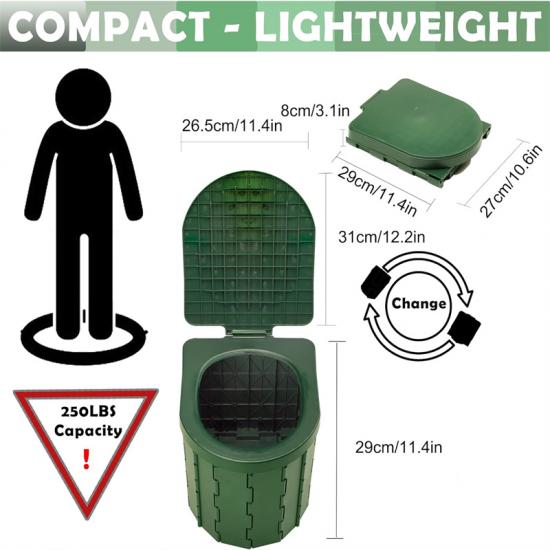 Este Vaso Sanitário Leve com Bolsas Substituíveis é mais do que apenas um vaso sanitário; ele também pode ser usado multifuncionalmente como uma combinação de armazenamento e vaso sanitário, lixeira, banquinho, caixa de armazenamento e muito mais. Com sua estrutura robusta, ele é muito estável, mesmo quando alguém com menos de 90 kg se senta nele. Quando você precisar fazer uma pausa ou guardar seus pertences, ele está à disposição.