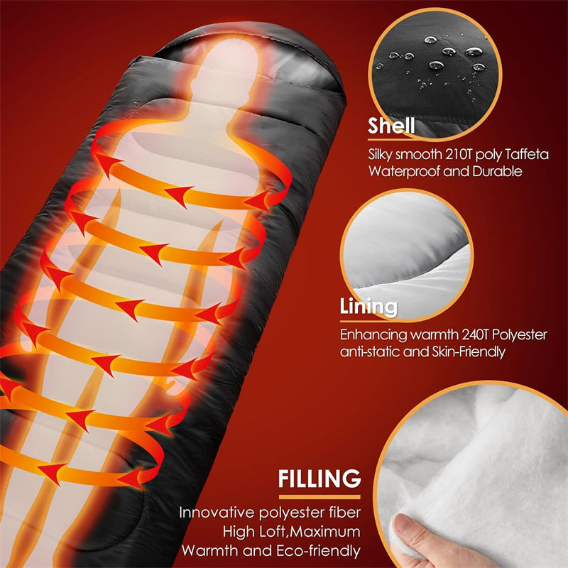 Design de zíper lateral direito para emergências em caso de desastre para dormirSINTA A DIFERENÇA - YRF Super Confortável Saco de dormir com capuz de cumeeira Projetados para garantir que, após um dia cansativo de trekking, trilhas, viagens ou qualquer outra exploração, você tenha uma boa e relaxante noite de sono. O design com controle de enrolamento torna a dobragem rápida e fácil. Junte dois zíperes para dobrar o espaço.