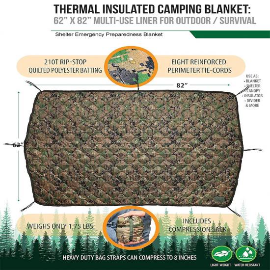 Tamanho do forro de poncho impermeável: O forro da capa de chuva tem aproximadamente 152 cm de comprimento por 203 cm de largura e pesa aproximadamente 0,8 kg em um saco de compressão. Inclui bolsa acolchoada de compressão de estilo militar para redução de espaço e volume.