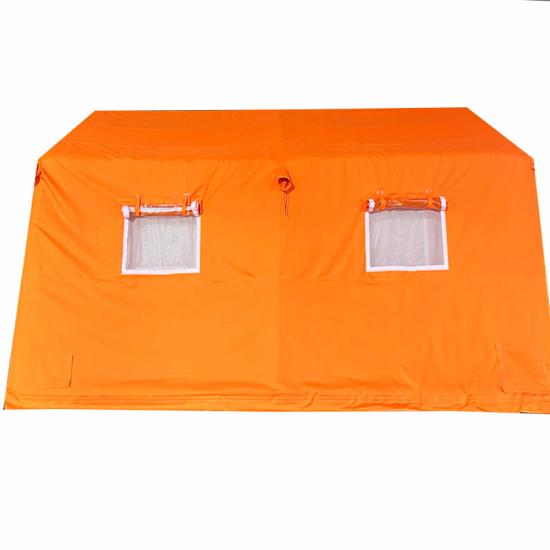 Esta tenda inflável à prova d'água e à prova de sol foi especialmente projetada para operações de resgate em campo em condições climáticas adversas, utilizando tecido com alta classificação de impermeabilidade de 3000 mm e tecnologia de proteção UV UPF50+, garantindo a secura e a segurança do interior em condições climáticas extremas. A tenda adota uma estrutura de coluna de ar especialmente reforçada, com 26 cm de diâmetro, capaz de suportar ventos fortes de nível 8, combinando estabilidade e portabilidade. Peso total de 55 kg, pode ser instalada por 3 pessoas em 18 minutos. O espaço interno chega a 13㎡, projetado com áreas multifuncionais, rapidamente conversíveis em posto médico, área de descanso ou centro de comando. Usando camada de isolamento de material composto, a diferença de temperatura entre o interior e o exterior pode chegar a 15 °C, adaptando-se a várias necessidades de resgate em campo. Exterior laranja com excelente visibilidade, equipado com múltiplos sistemas de vedação, utilizável por mais de 5 dias em ambientes com chuva contínua.