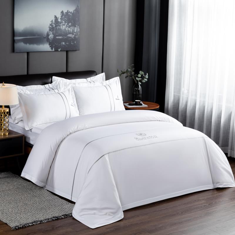 Roupa de cama de sarja por atacado Toque macio, proporcionando um sono luxuoso e uma experiência matinal revitalizante. Fio compacto especial feito de 100% algodão de fibra longa. O lençol de cama em cetim de algodão de fibra longa possui absorção de suor e equilíbrio de temperatura para mantê-lo fresco no verão e aquecido no inverno.